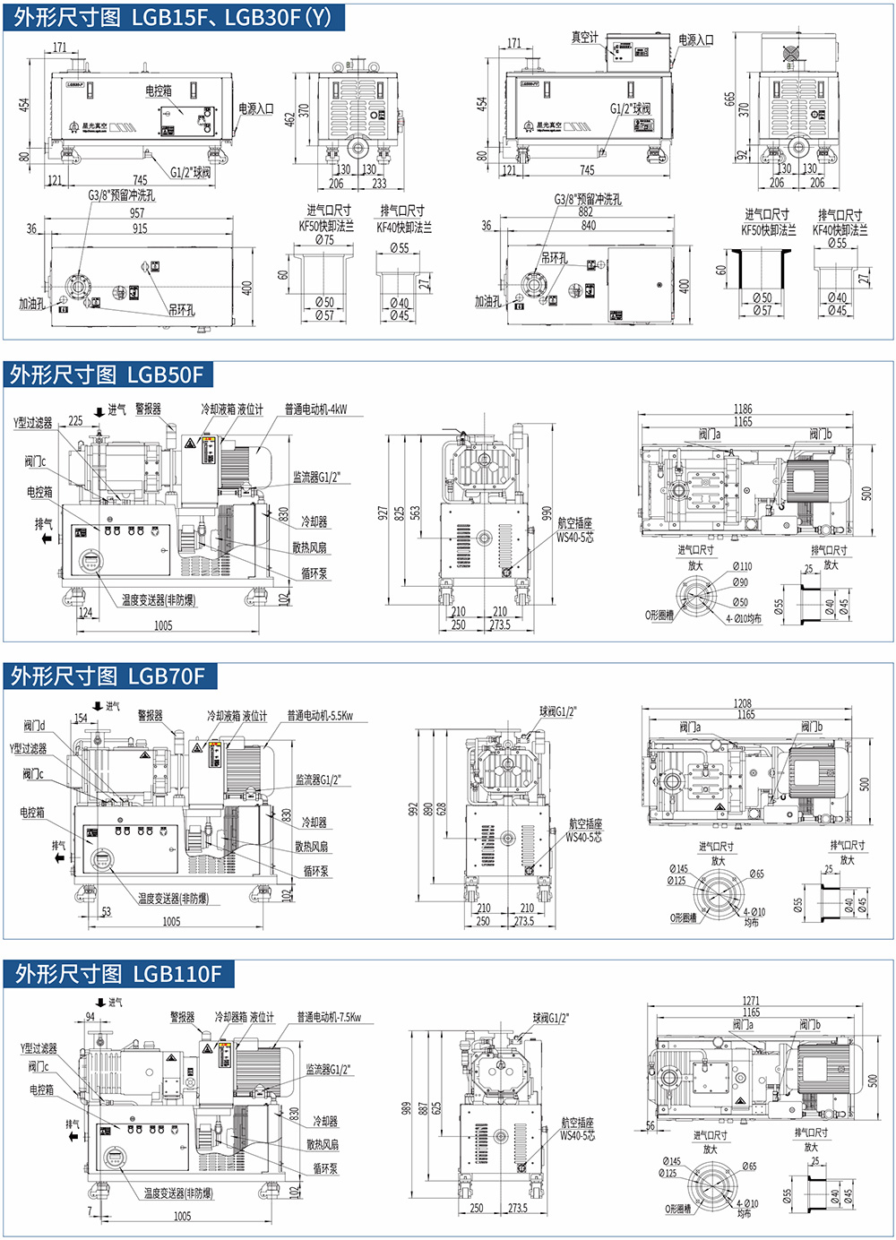F系列風(fēng)冷干式螺桿真空泵不依賴(lài)外部循環(huán)水,通過(guò)自身獨(dú)特的風(fēng)冷降溫(LGB30F/LGB30FY)或冷凍液循環(huán)降溫(LGB70F/LGB110F)系統(tǒng)來(lái)完成熱量交換,保證了真空泵的可靠、長(zhǎng)期運(yùn)行,是一次技術(shù)上的極大革新。